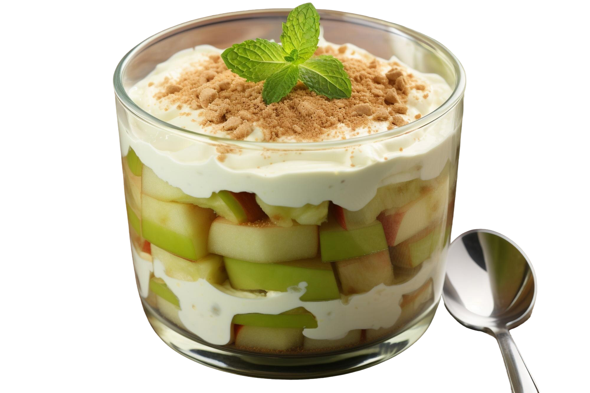 Los ingredientes son (Manzana, Crema, nueces y azúcar)